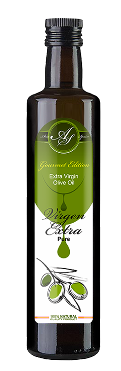 Aceite de Oliva Virgen Extra "ANA SPAIN" ha sido envasado sin filtrar para conservar todos sus aromas y sabores naturales primarios. Si en el fondo del envase se apreciase una capa delgada de color oscuro es como consecuencia de un proceso natural de decantación de pequeñas partículas de aceituna contenidas en el aceite.